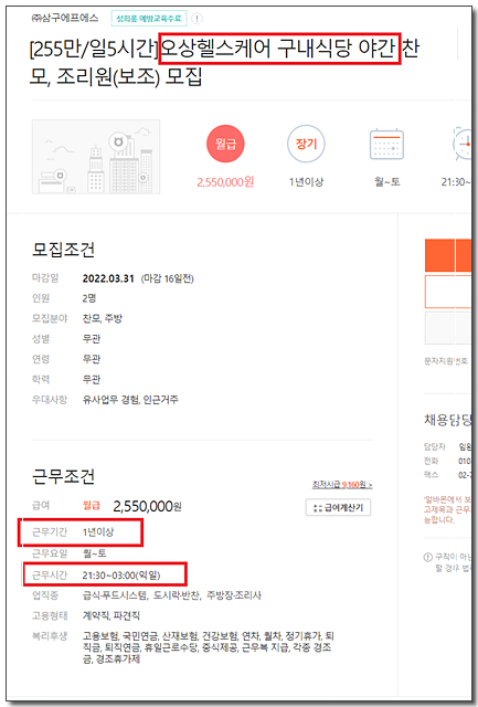 6층 구내식당의 야간 타임 구인 공고를 발견했습니다.