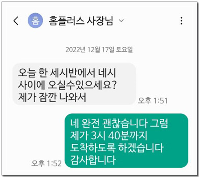 그래서 사장님께 문자를 드렸습니다